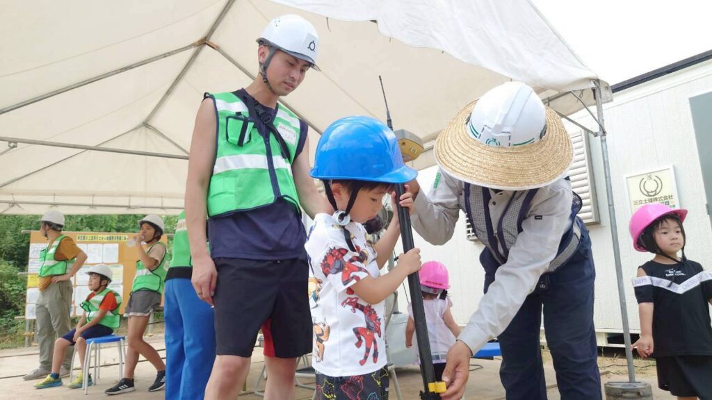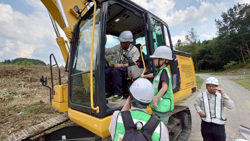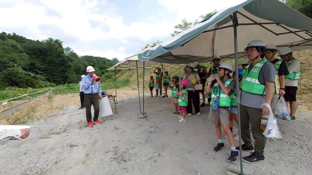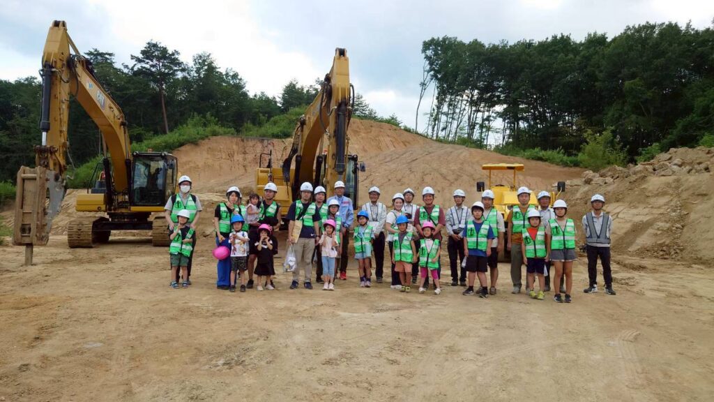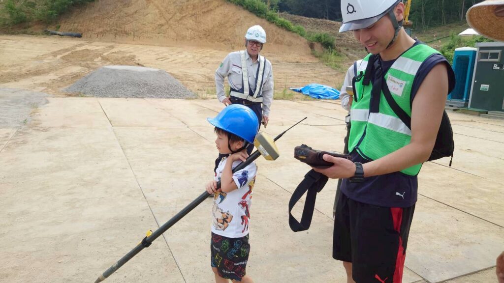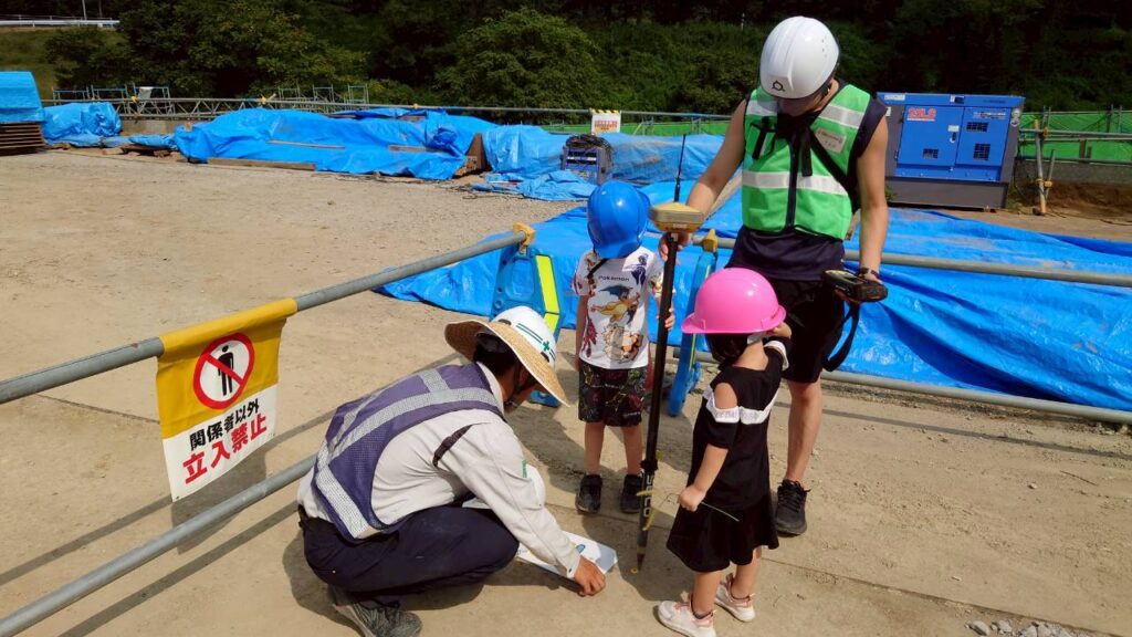 メニュー Home 双葉町復興祈念公園 只見町国道289号 (新)郡山合同庁舎 阿武隈川上流遊水地群 阿武隈川遊水地群関連工事・福島空港(場周道路) 2025年8月31日(日)阿武隈川遊水地群関連工事・福島空港(場周道路)の建設現場見学会を開催しました。 測量体験をしました。 体験内容 バスに乗って建設現場へ向かいました。 福島空港の場周道路 立入禁止区域をバスで走行しました。 重機に乗ってパチリ! 重機を前に記念撮影をしました。